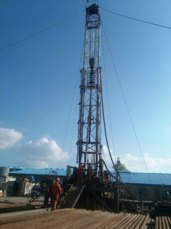 圖片新聞:公司院內(nèi)的地?zé)嵩囼炓痪?,下套管施工?017年史文全報道)